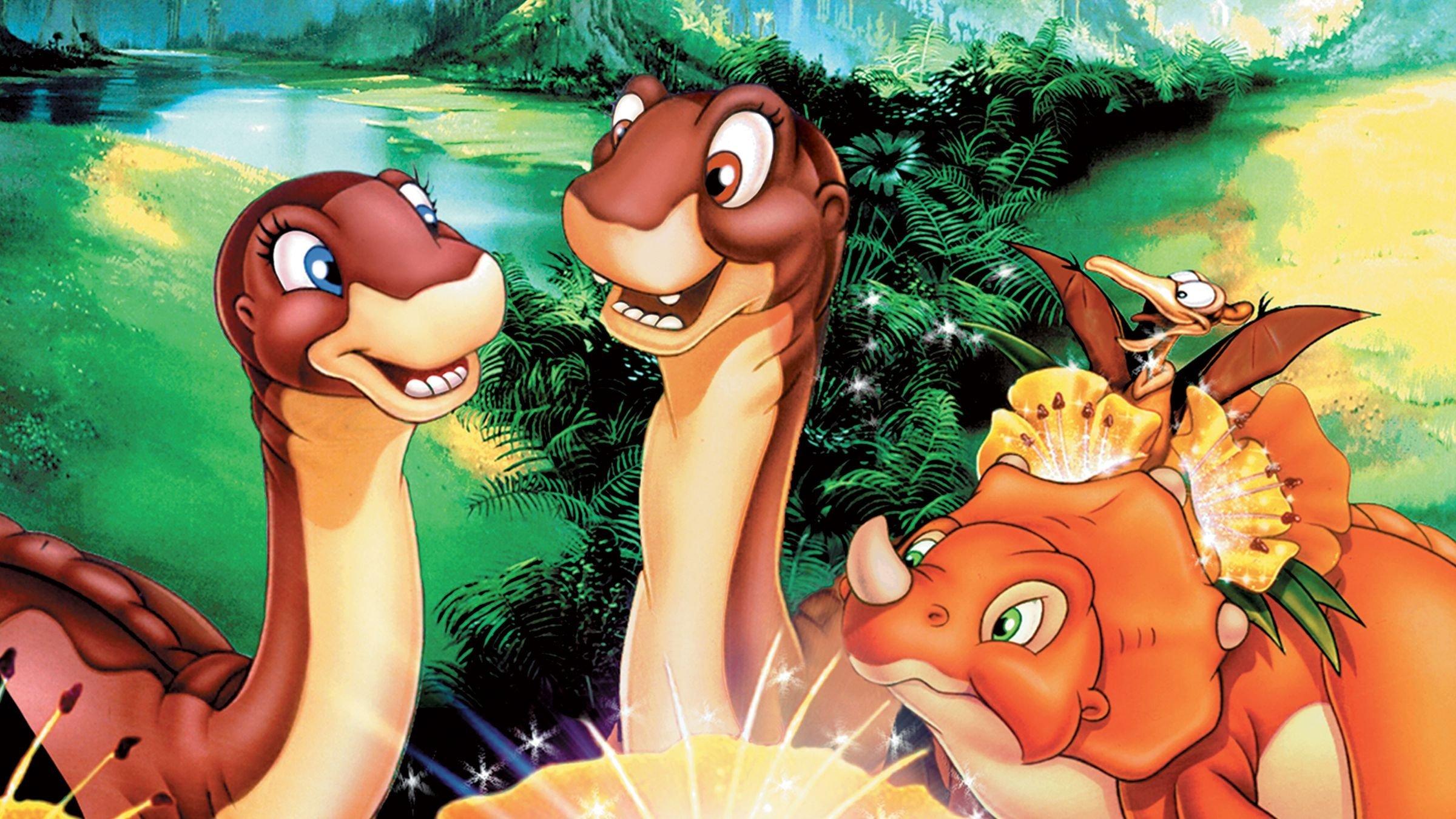 The Land Before Time IV: Journey Through the MistsUna manada de Cuellilargos migratorios trae importantes noticias sobre el cambio de tiempo en las regiones más allá del Gran Valle. Aquella que una vez estuvo seca ahora se ha convertido en la “Tierra de las Brumas”. Extrañas nuevas criaturas empiezan a aparecer en estos parajes mientras que otras se trasladan a los altos árboles que los Cuellilargos solían comer. Afortunadamente el Gran Valle está más bonito que nunca, pero el abuelo de Piecito cae enfermo y su única esperanza es comer los pétalos de la dorada flor de la noche que solo crece en la Tierra de las Brumas.