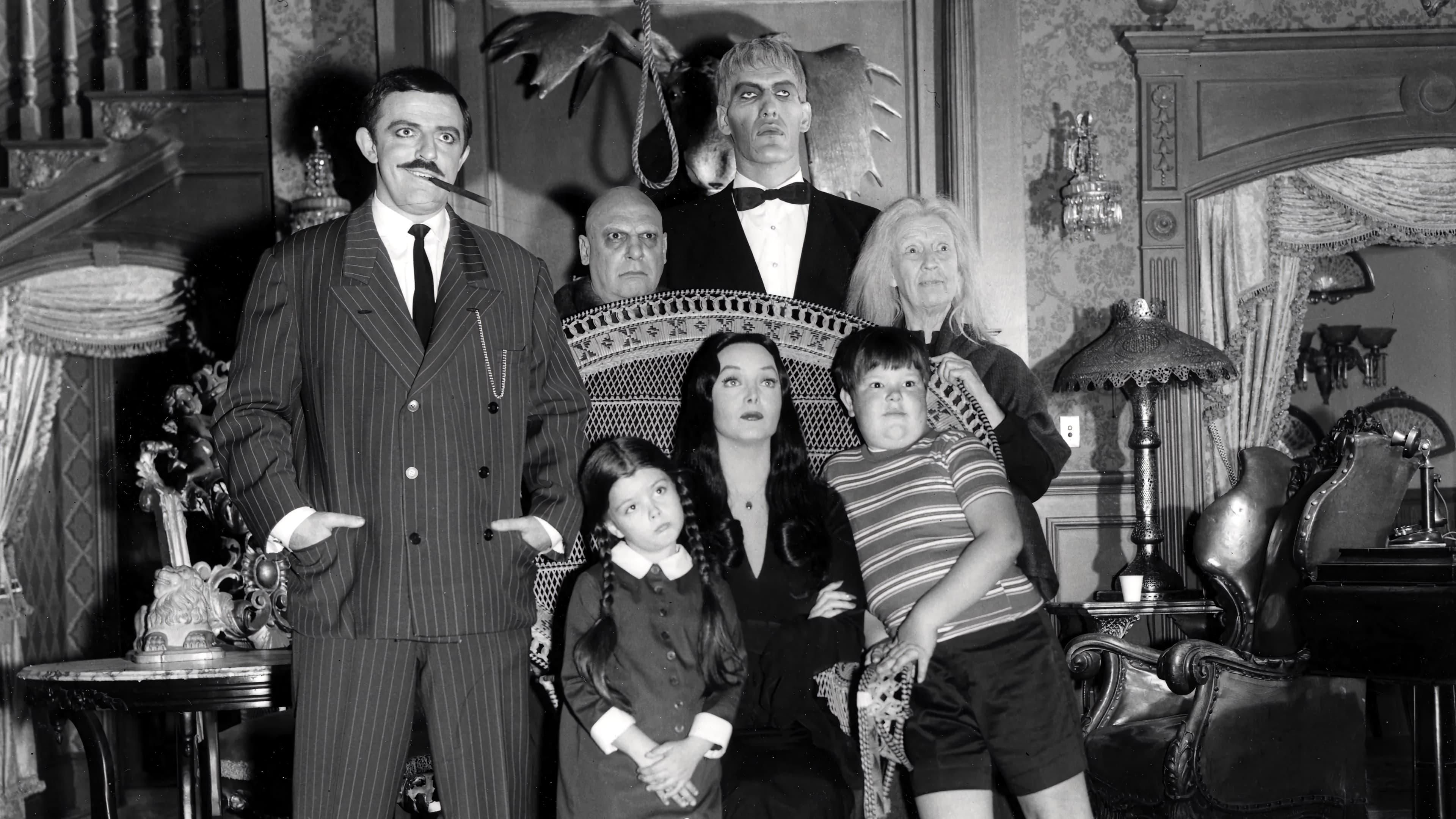 The Addams FamilyLos Addams son una familia estrafalaria que tiene plantas carnívoras como mascotas. Gómez, el padre, es un tipo siniestro que se tortura a sí mismo. Morticia, la madre, es una vampiresa a la que gusta caminar por el cementerio. Los demás miembros de la familia son sus tétricos hijos Miércoles y Pugsley, el extrañísimo tío Fétido, Lucas, el mayordomo, y Cosa, una mano con vida propia. "La familia Addams", creada a partir de unas tiras cómicas de Charles Addams, fue una popular serie emitida por la ABC desde 1964 a 1966. Propició además una serie de dibujos animados y algunas películas.